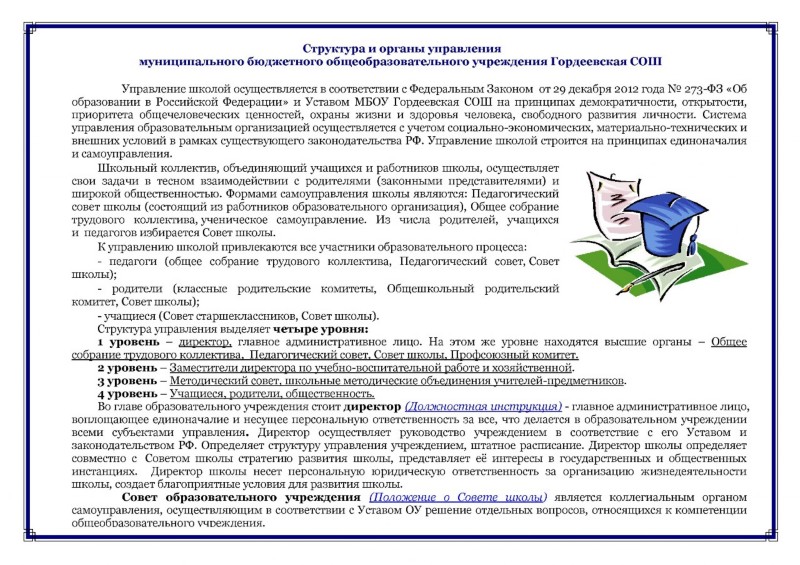 Структура и органы управления муниципального бюджетного общеобразовательного учреждения Гордеевская СОШ